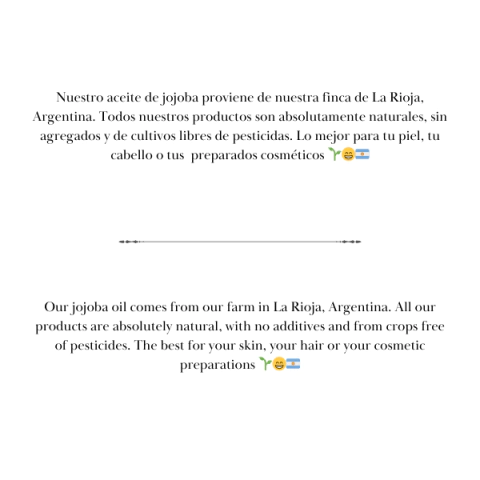On our farm in La Rioja, fantastic jojoba seeds are produced, which are pressed to obtain the precious Jojoba Oil.